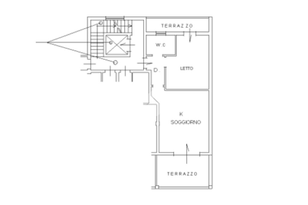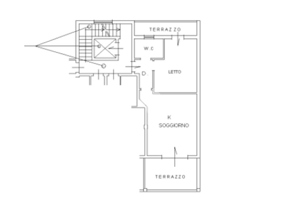 Questo appartamento di 55 mq è composto da un comodo ingresso dal quale si accede alla grande camera matrimoniale con terrazza, il bagno con doccia e l'ampia cucina vivibile dalla quale accediamo al punto forte dell'immobile,