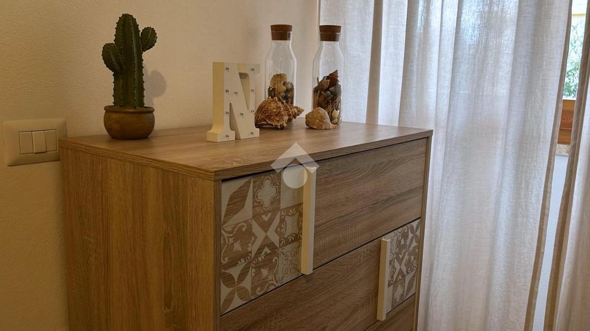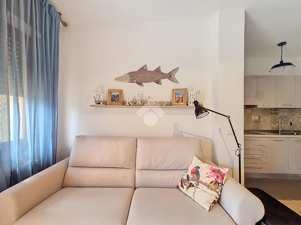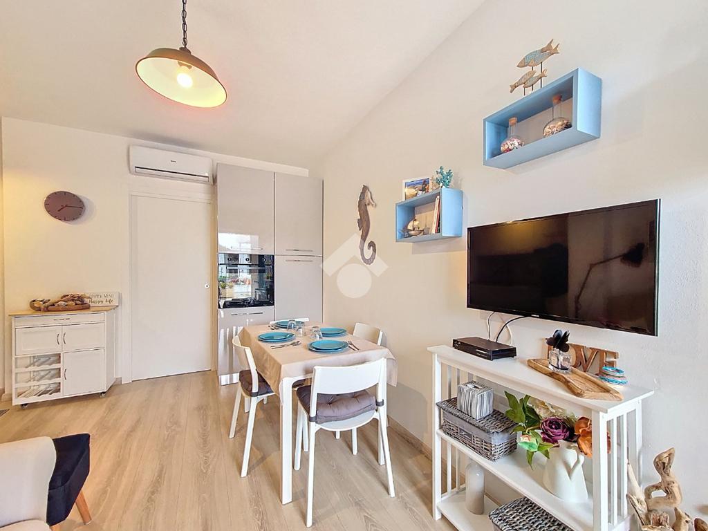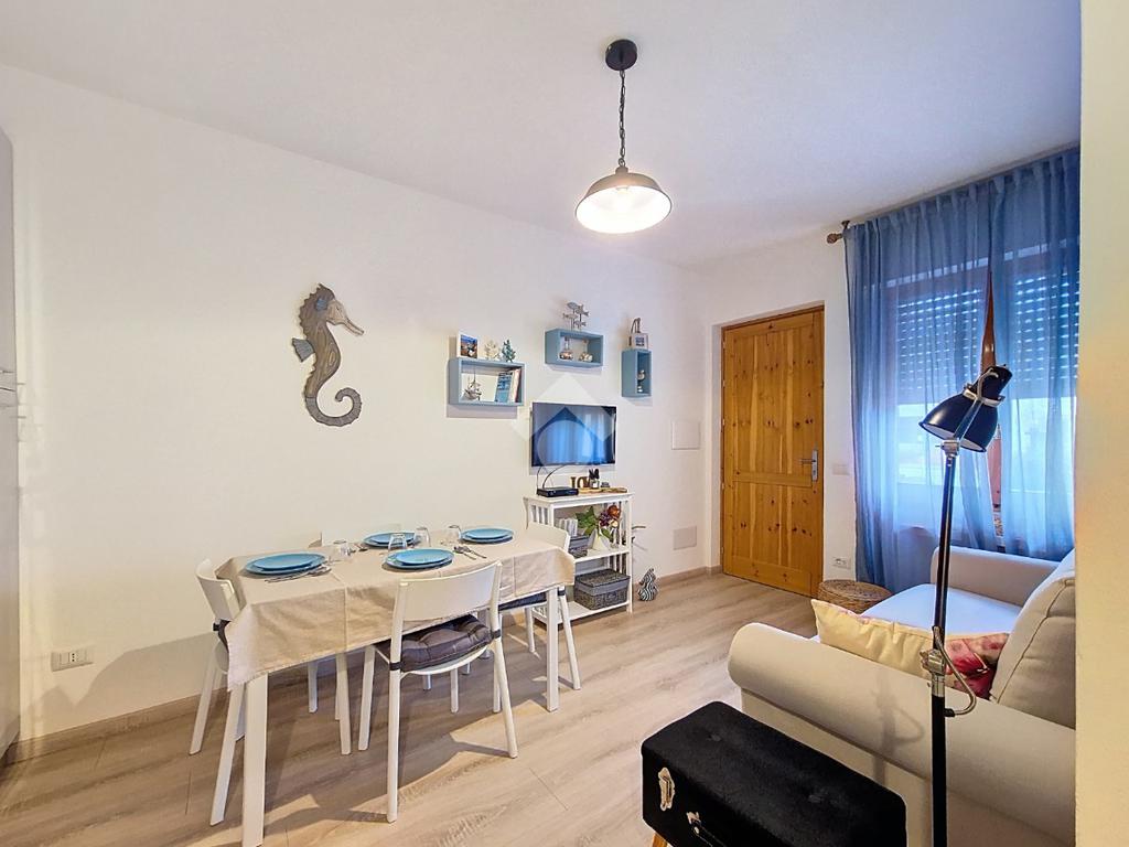 L'appartamento si apre su un soggiorno accogliente con angolo cottura, arredato con gusto e dotato di finiture moderne. La zona notte è composta da una camera matrimoniale perfetta per godersi il riposo dopo una giornata al mare, e un bagno elegante e funzionale.
