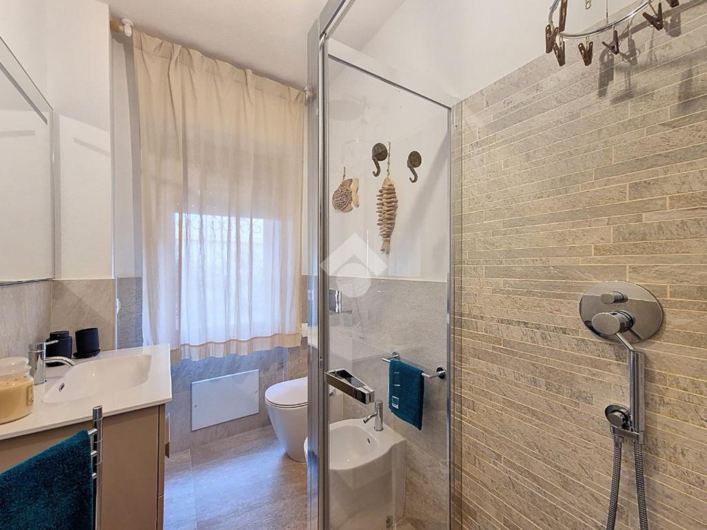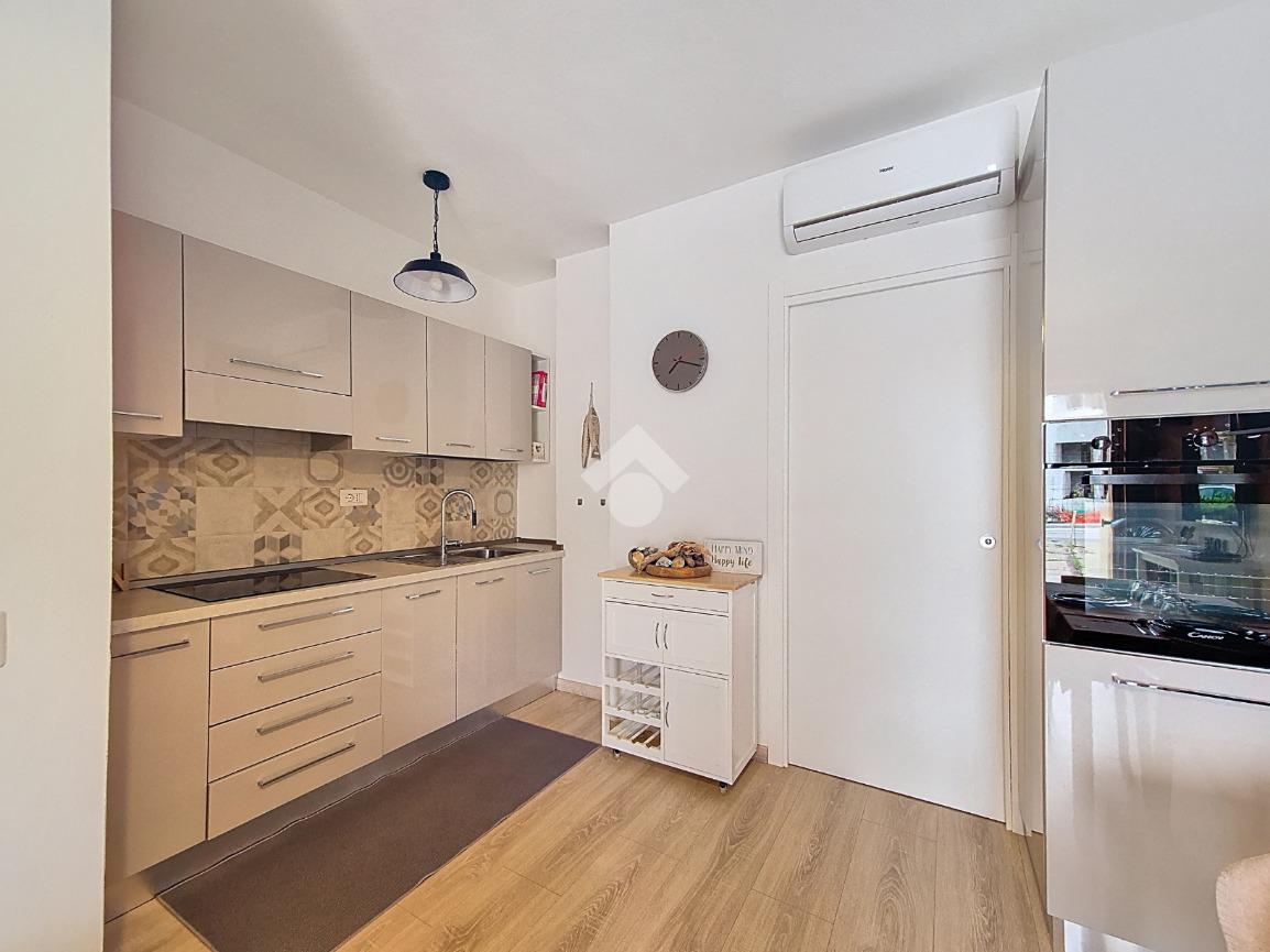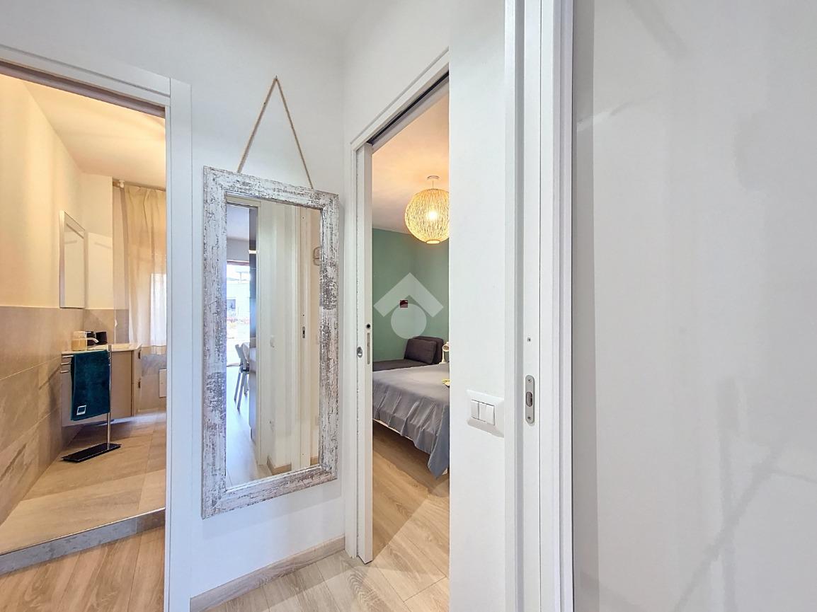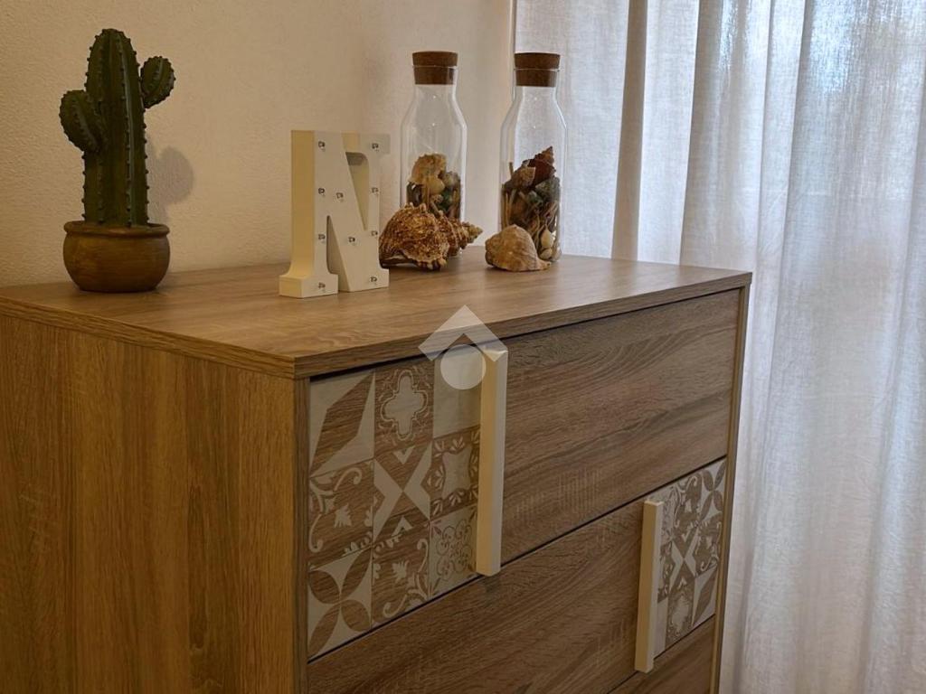 L'appartamento si apre su un soggiorno accogliente con angolo cottura, arredato con gusto e dotato di finiture moderne. La zona notte è composta da una camera matrimoniale perfetta per godersi il riposo dopo una giornata al mare, e un bagno elegante e funzionale.