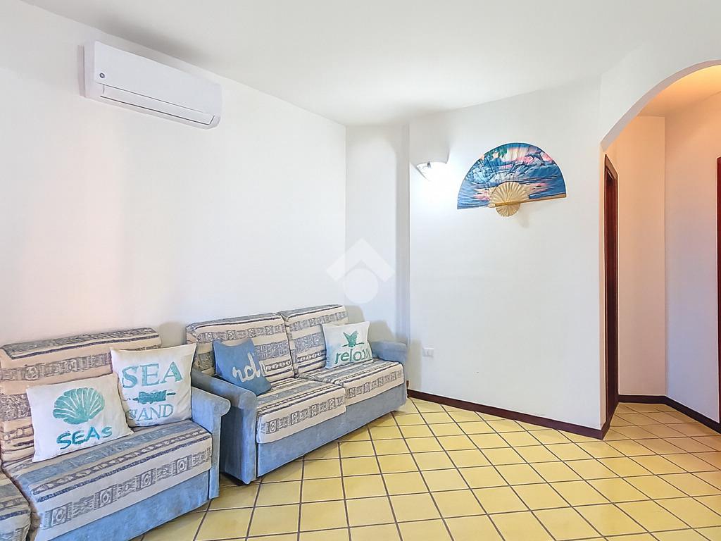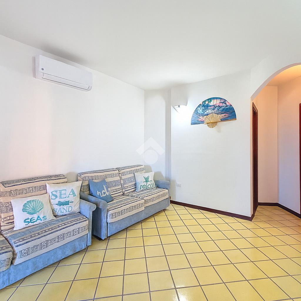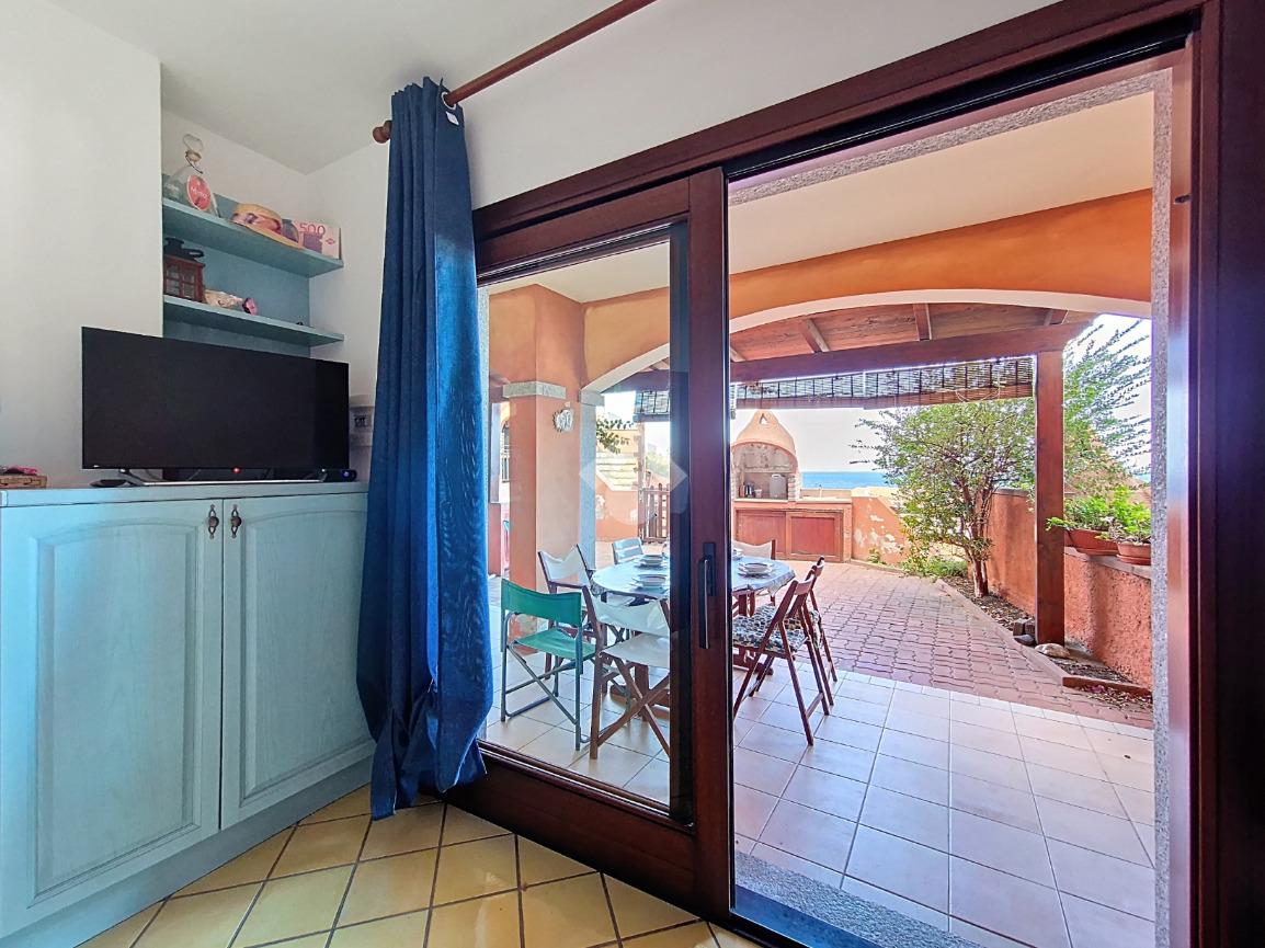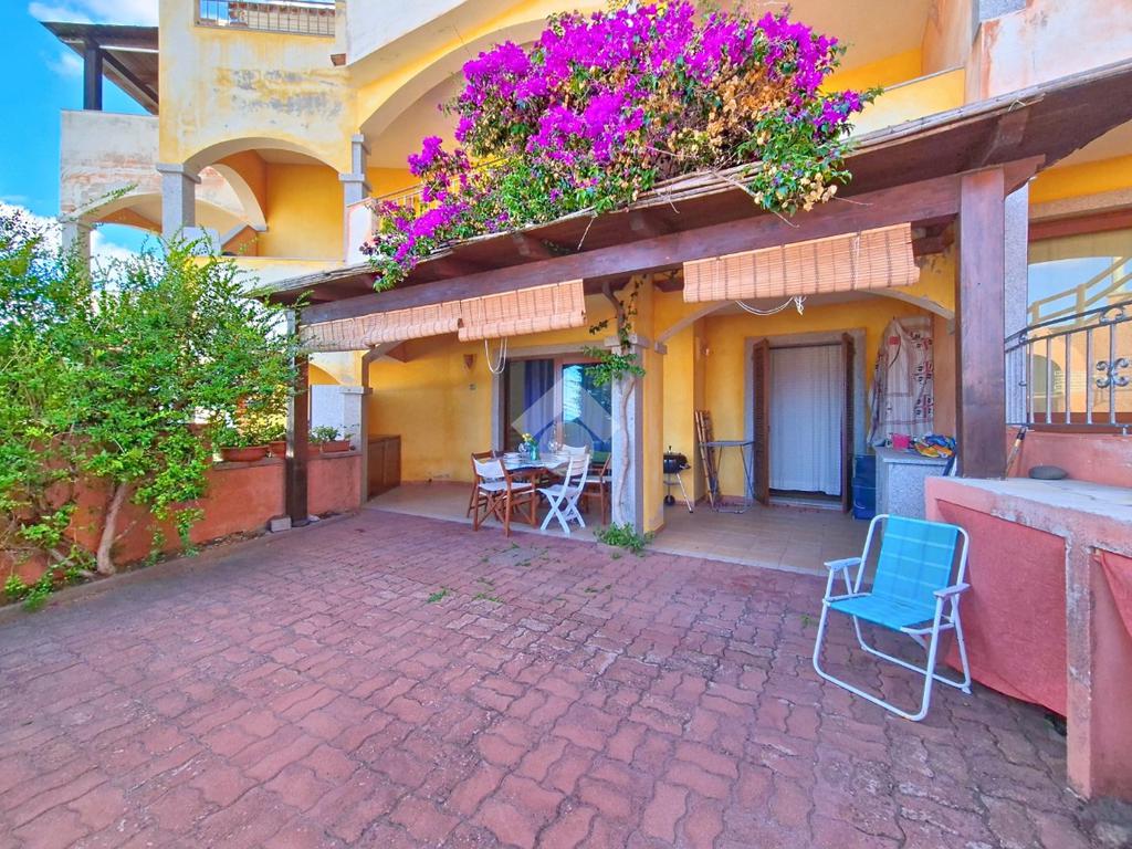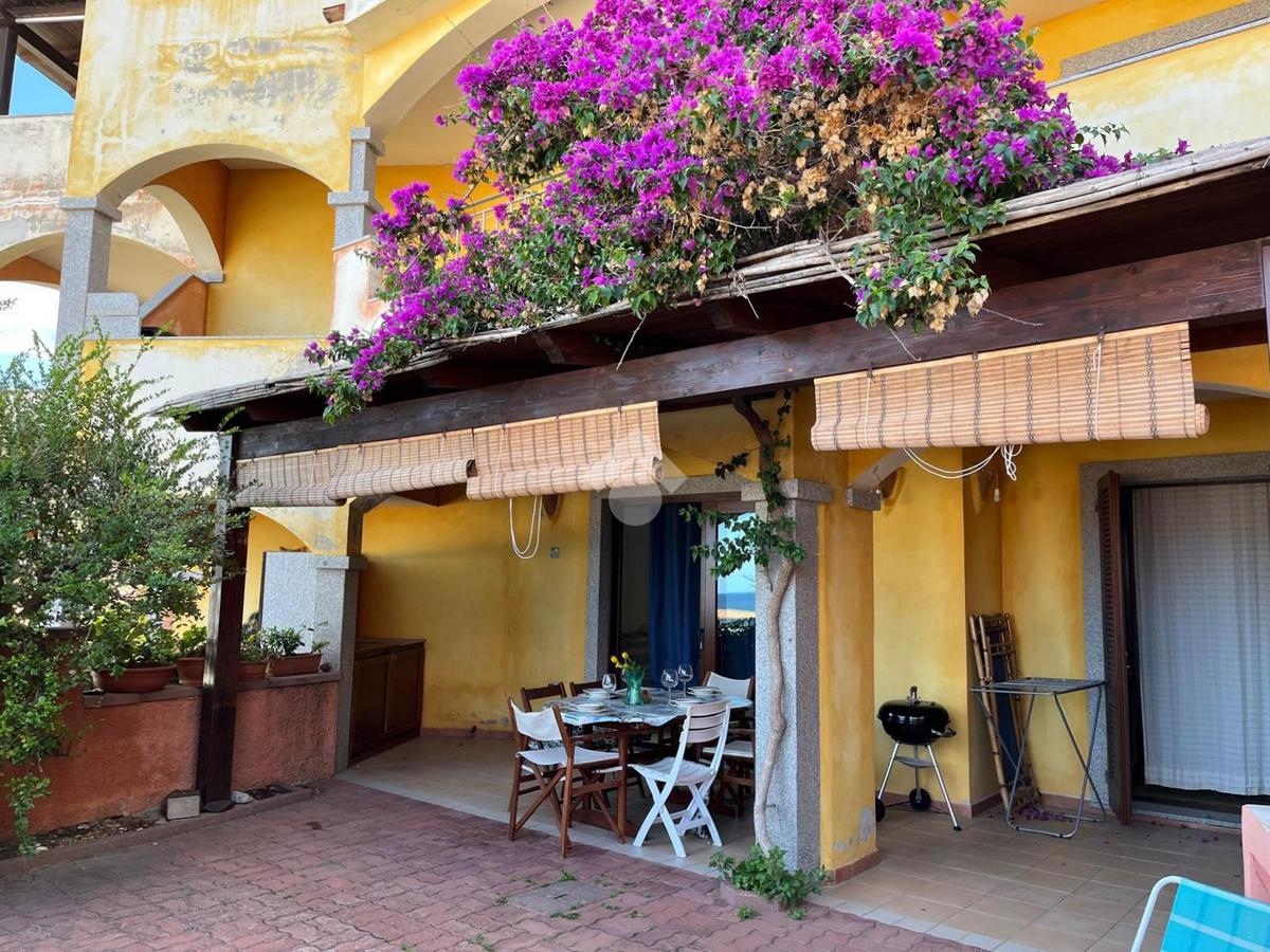 La proprietà si distingue per l'ampio cortile privato, un vero valore aggiunto che permette di pranzare e cenare all'aperto, prendere il sole in totale relax o lasciare che i più piccoli giochino in tutta sicurezza. Dal cortile si accede alla luminosa zona giorno composta da sala pranzo con angolo cottura. Un disimpegno conduce al bagno, rifinito in elegante cera sarda, e alla camera matrimoniale, anch'essa con affaccio diretto sul cortile.