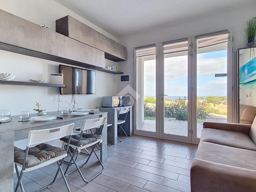 In una delle zone più tranquille e panoramiche di Castelsardo, nella località “Li Russi”, proponiamo in vendita un elegante appartamento caposchiera situato al piano terra di un residence di recente costruzione, ultimato nel 2019, dotato di piscina condominiale.