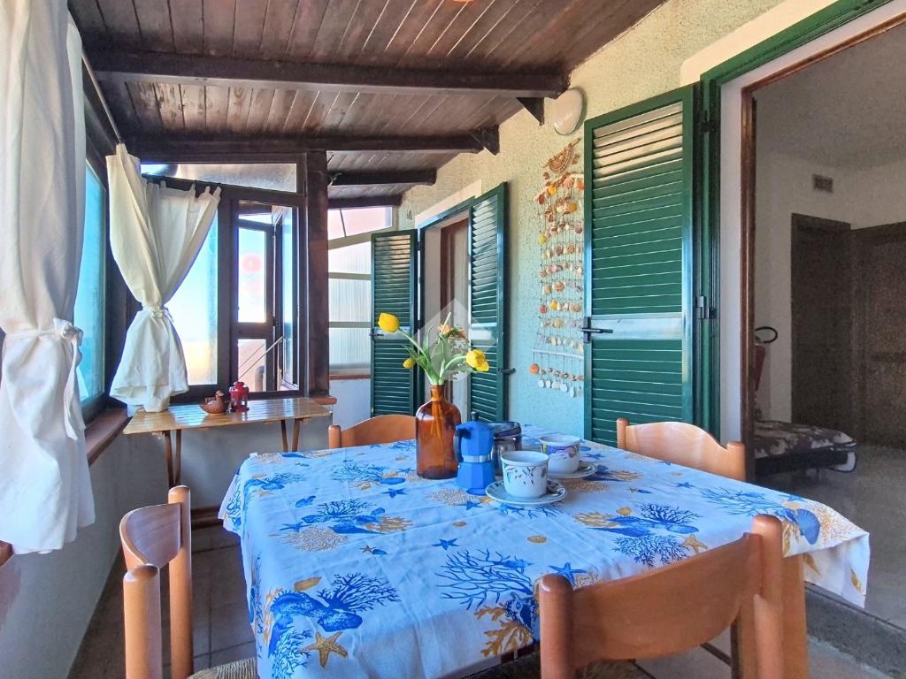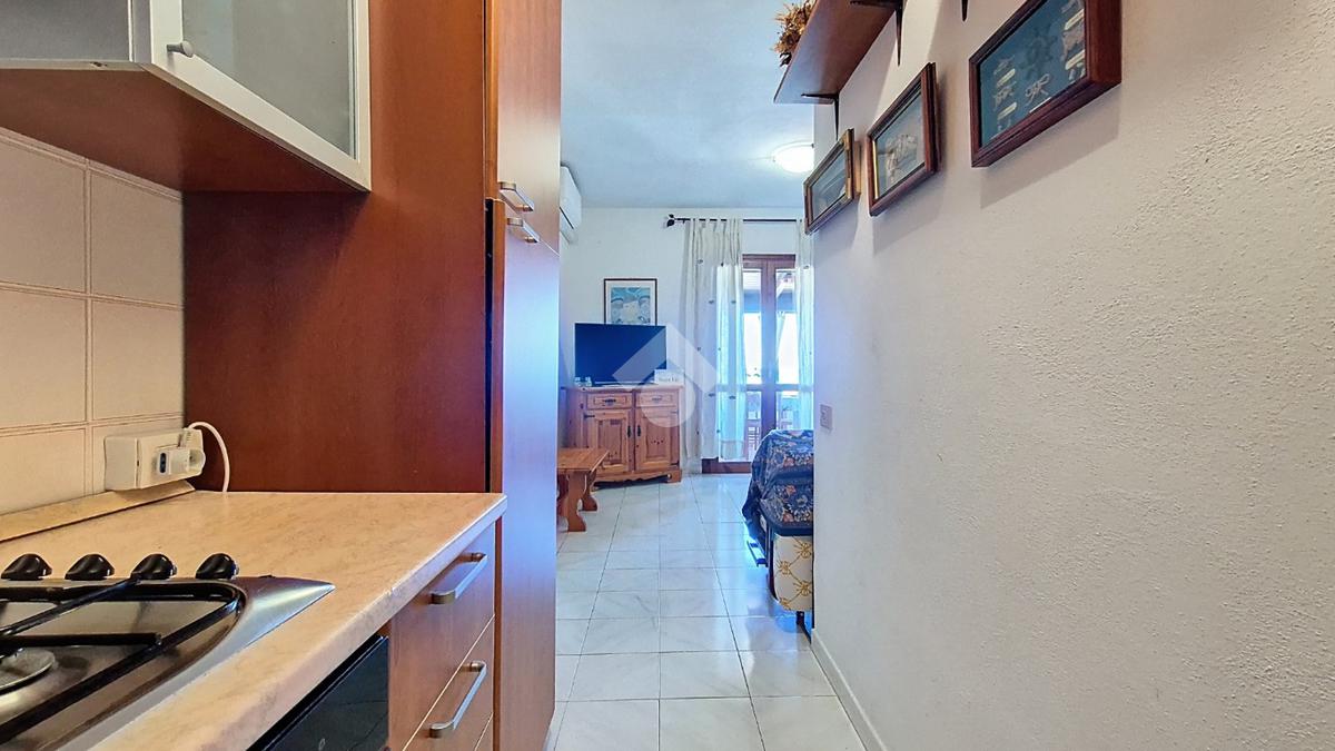 Varcando la soglia dell’appartamento, si viene accolti da un ampio e luminoso soggiorno con cucina, uno spazio conviviale perfetto per vivere la casa ogni giorno in pieno comfort. Da qui si accede alla terrazza, vero cuore della casa: un luogo arioso e riservato, ideale per pranzi e cene all’aperto, dove poter ammirare il tramonto tingere di rosso il cielo e ascoltare in lontananza il dolce rumore del mare. La vista che si apre sul mare è incantevole, un quadro naturale che regala emozioni in ogni momento della giornata.