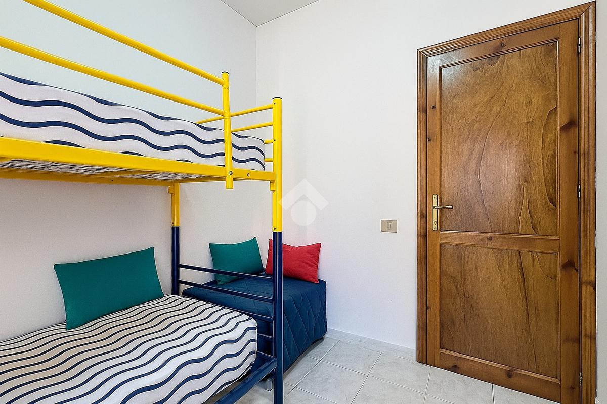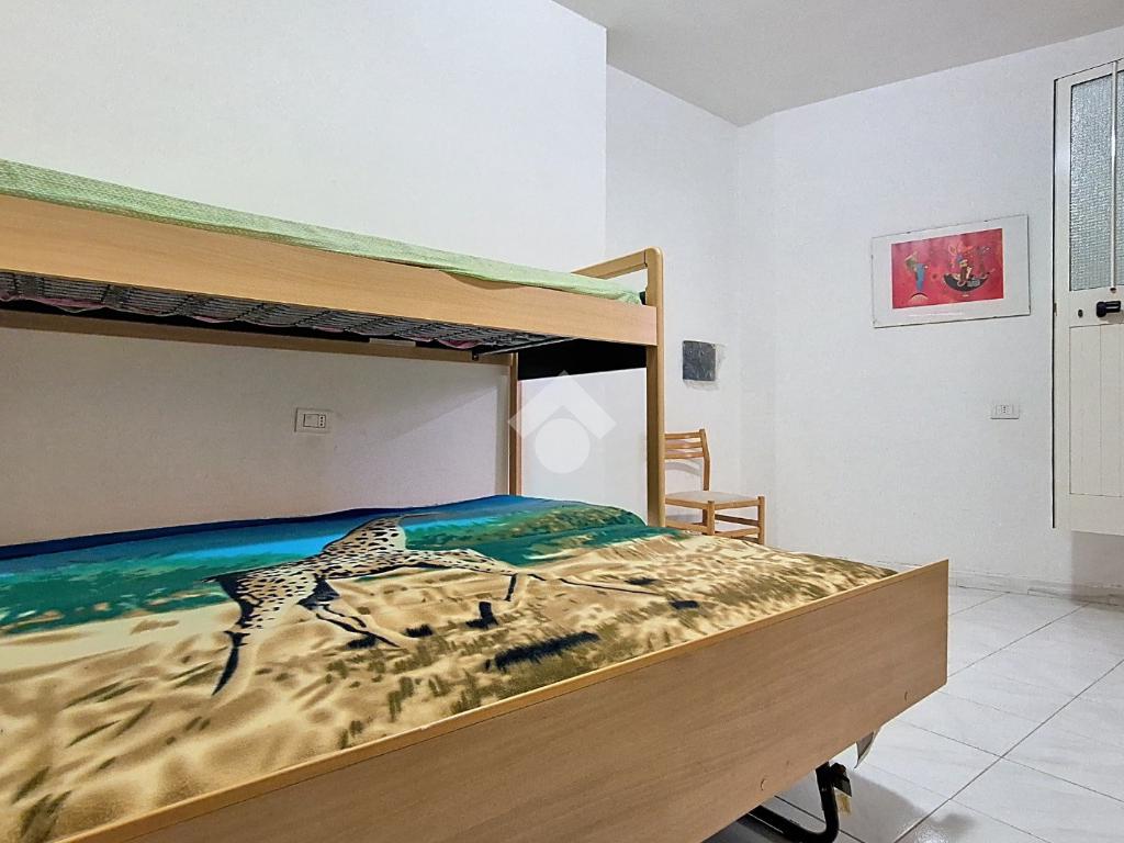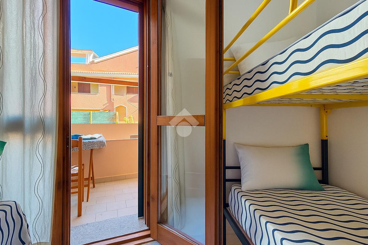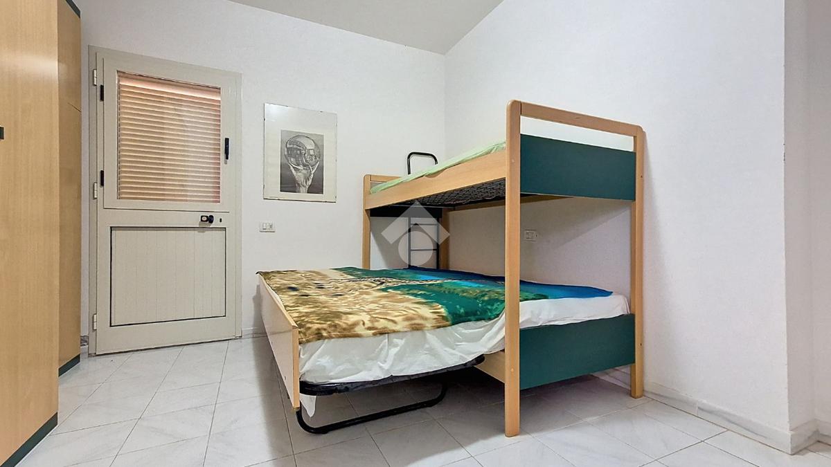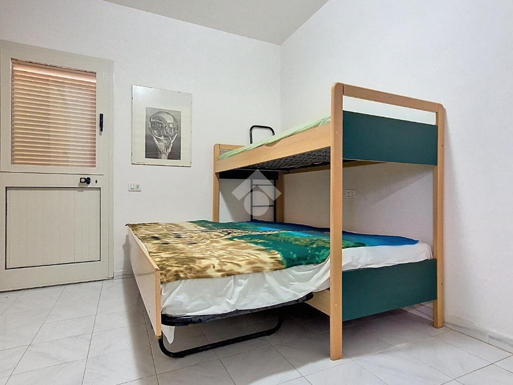Dal disimpegno si accede alla zona notte, composta da due camere da letto e un bagno. La prima camera, una graziosa cameretta con letto a castello, è ideale per i bambini e dispone di un balconcino privato.
