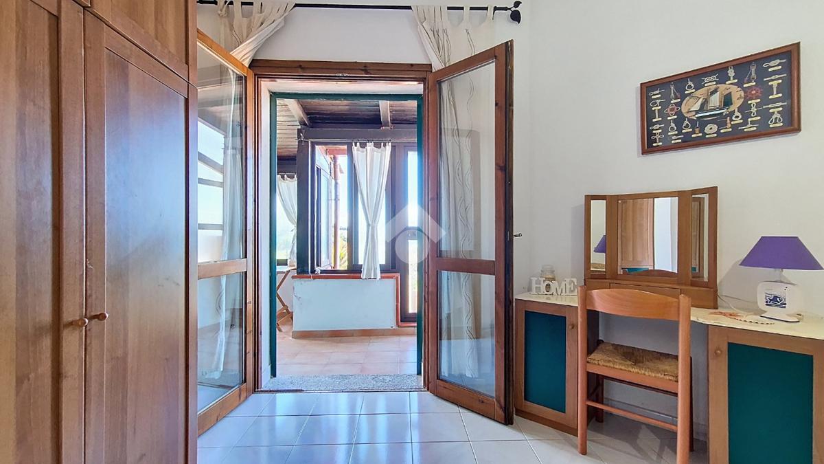 La camera padronale è ampia e confortevole, con accesso diretto alla terrazza: da qui, al risveglio, si può ammirare la luce del mattino riflettersi sul mare e respirare il profumo salmastro che arriva dalla costa.