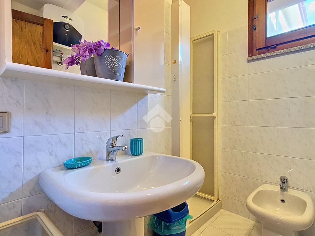 Il bagno, finestrato e dotato di doccia, è pratico e ben organizzato.