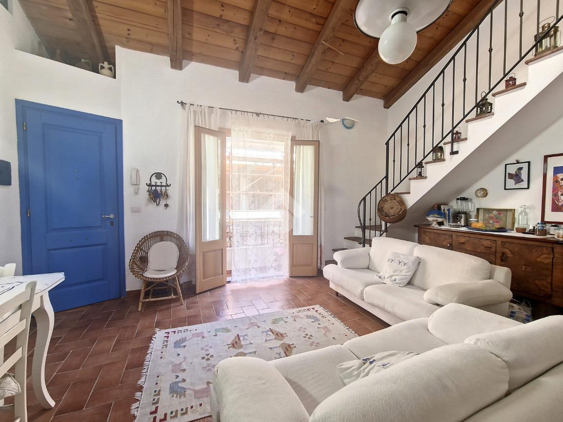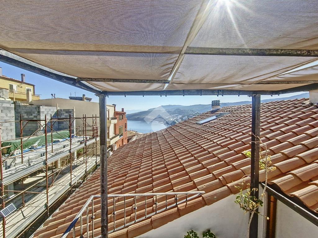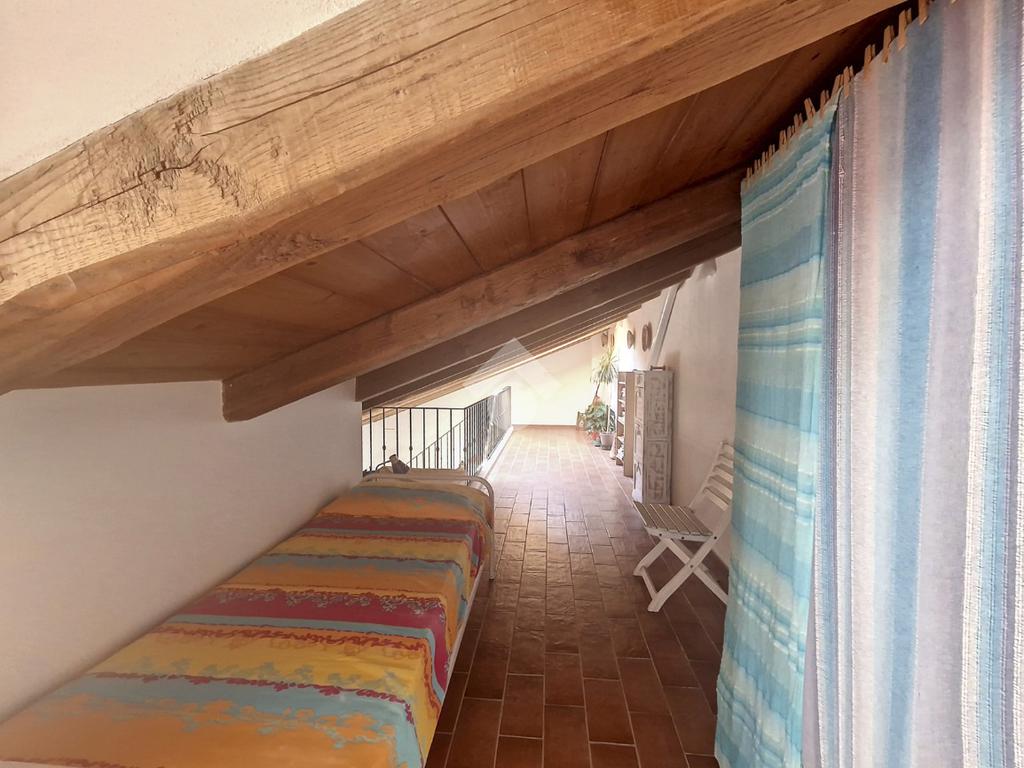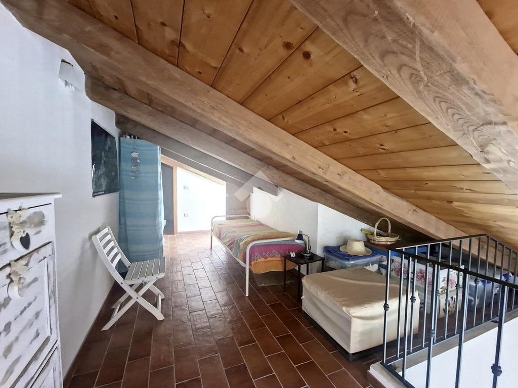 Una scala interna conduce al soppalco mansardato e al meraviglioso terrazzo con veranda e vista mare, spazio ideale per godersi al meglio i mesi caldi e le serate estive in totale tranquillità. Completa la proprietà una autorimessa adibita a taverna, comoda e versatile, che aggiunge valore e funzionalità all’abitazione.