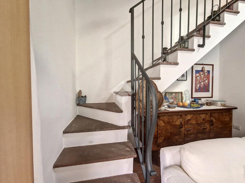 L’accesso all’abitazione avviene tramite cancelletto indipendente che introduce in un atrio privato al piano terra, riservato e ben delimitato. Da qui, mediante scala interna ad uso esclusivo, si raggiunge l’ingresso principale della proprietà, posto al piano superiore, garantendo privacy e separazione dagli spazi esterni.