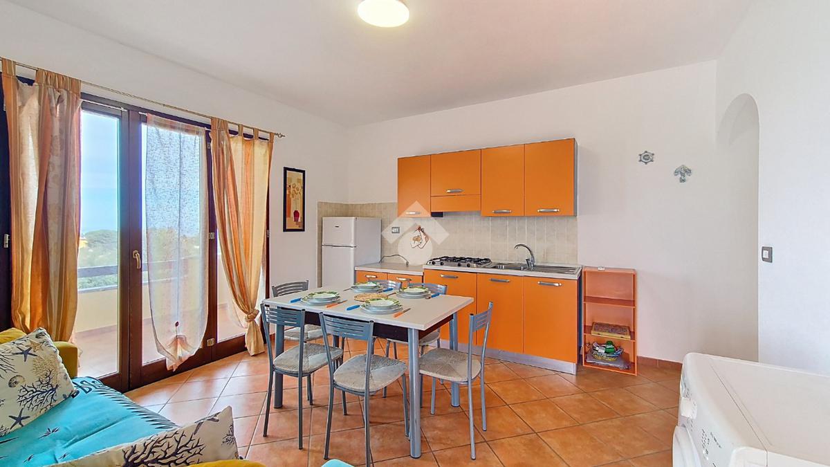 L’abitazione, comoda e ben esposta, si apre su una luminosa zona giorno con angolo cottura, arieggiata e accogliente, con accesso diretto al terrazzo.