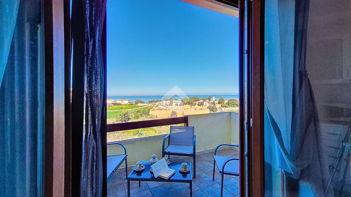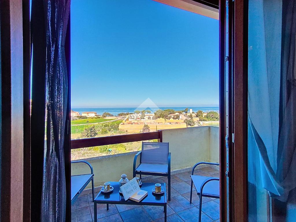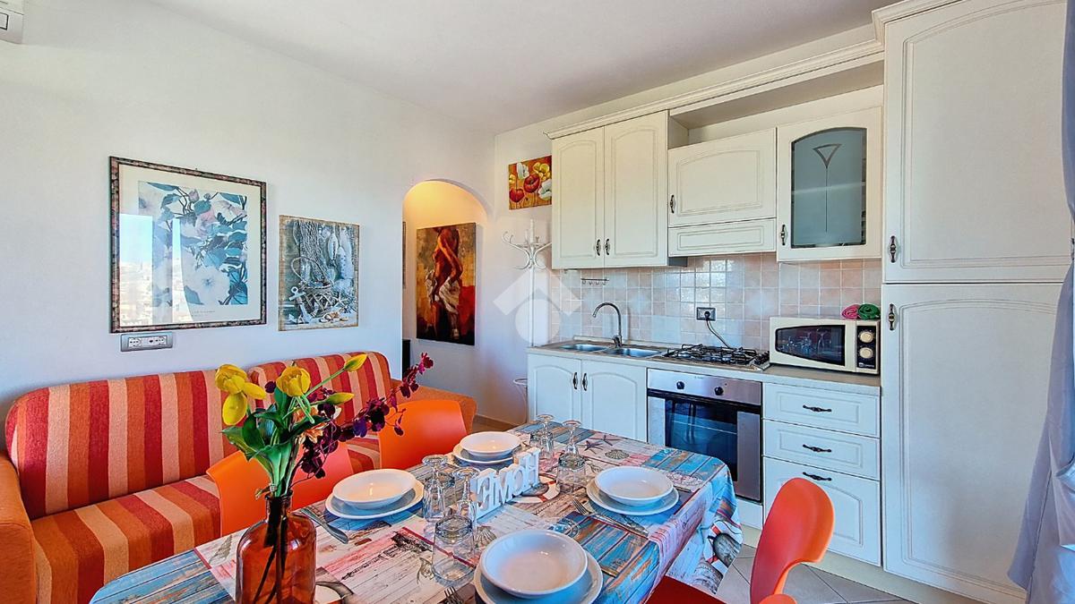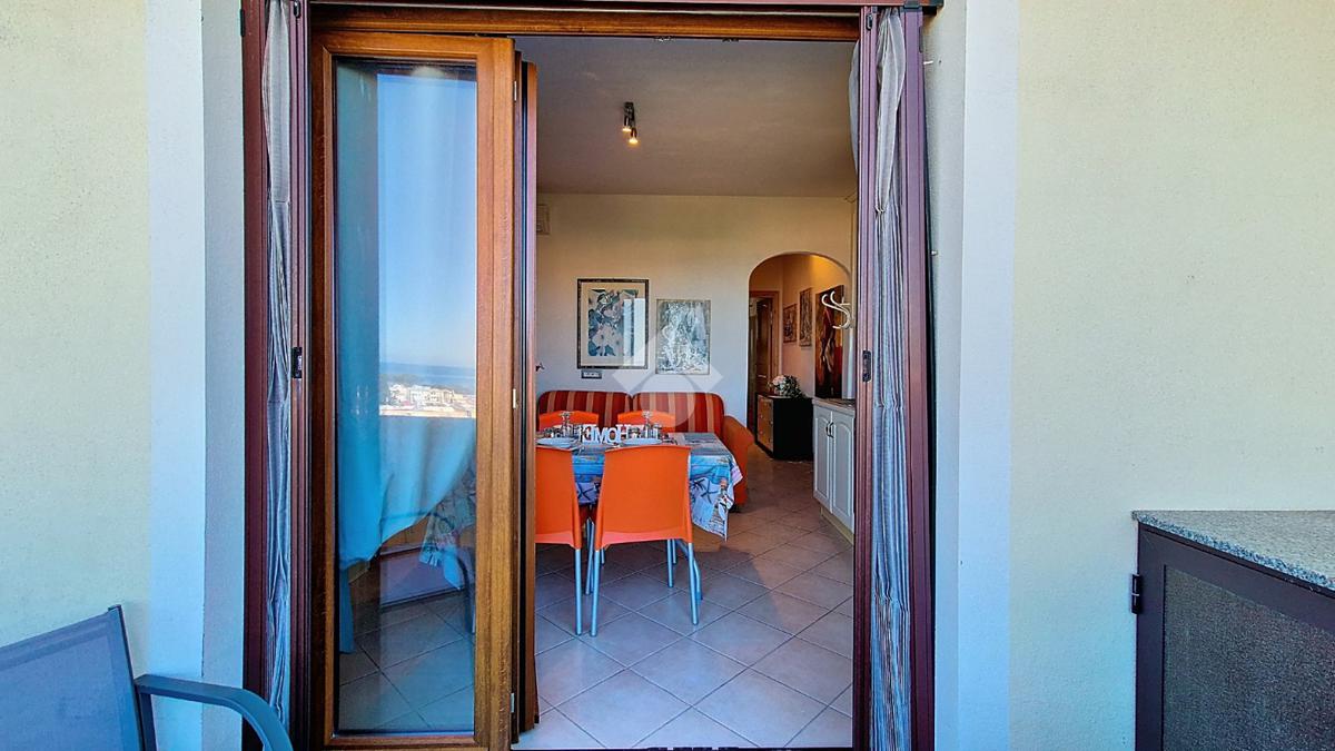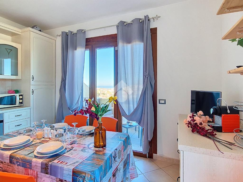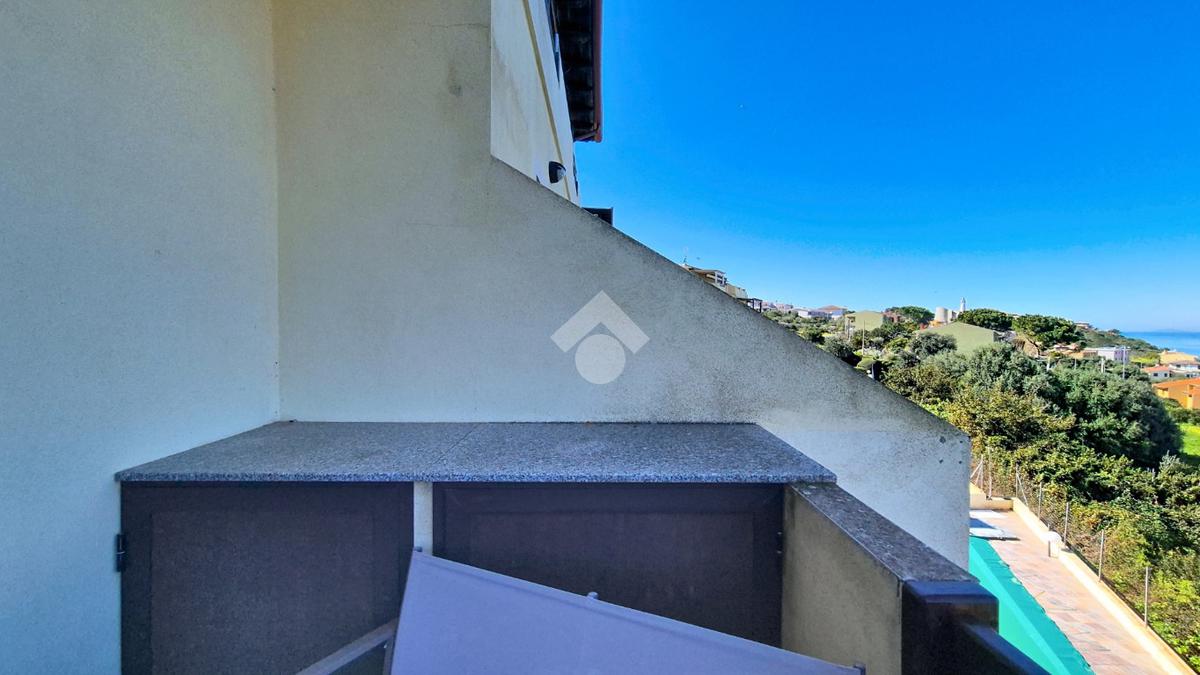 L'appartamento oggetto di vendita si trova al piano primo e ultimo del complesso, con accesso da scala esterna di proprietà esclusiva. L’immobile possiede una terrazza panoramica che permette di godere di attimi di relax con una vista suggestiva su tutto il golfo, spaziando dall'isola dell' Asinara sino a Santa Teresa di Gallura.