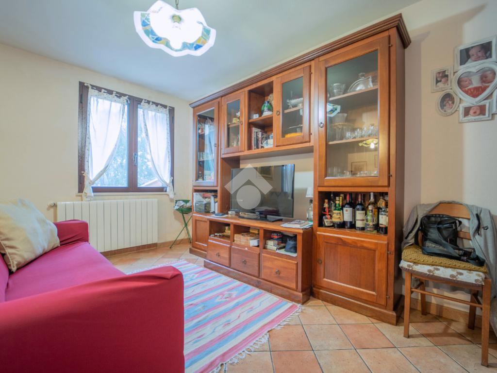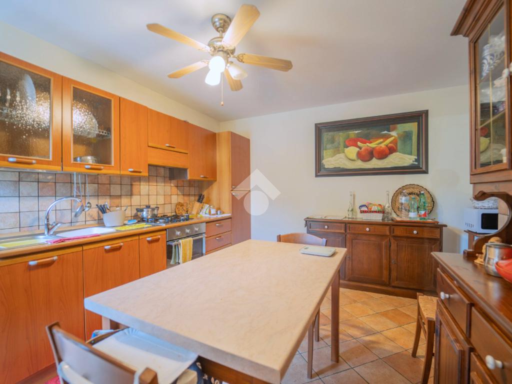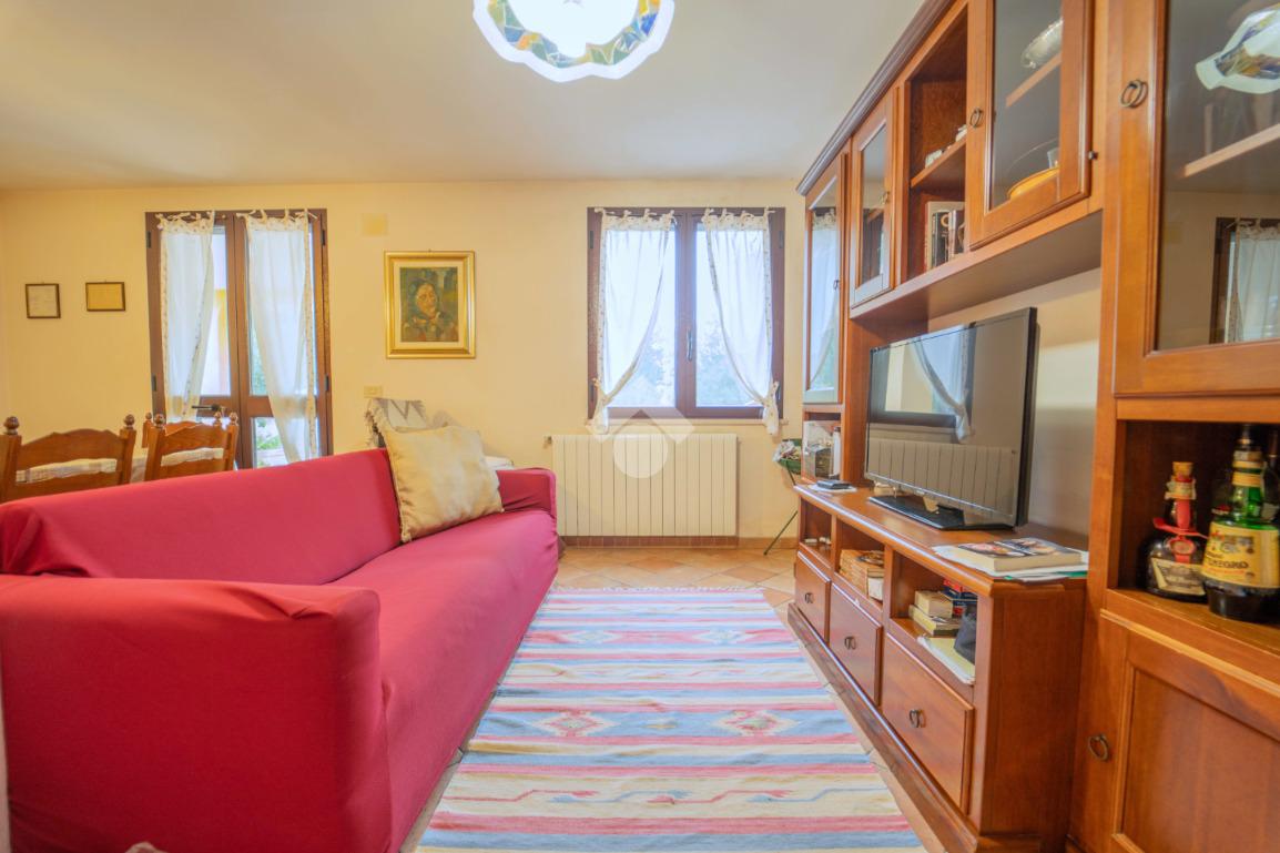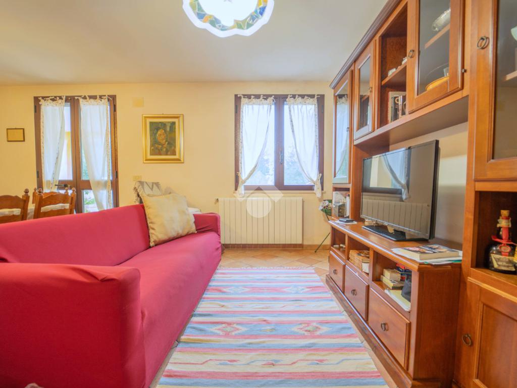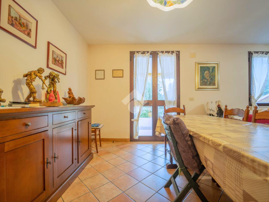 Al piano terra si sviluppa la zona giorno: un ampio e luminoso soggiorno che si affaccia sul verde circostante, una cucina separata e un bagno di servizio.