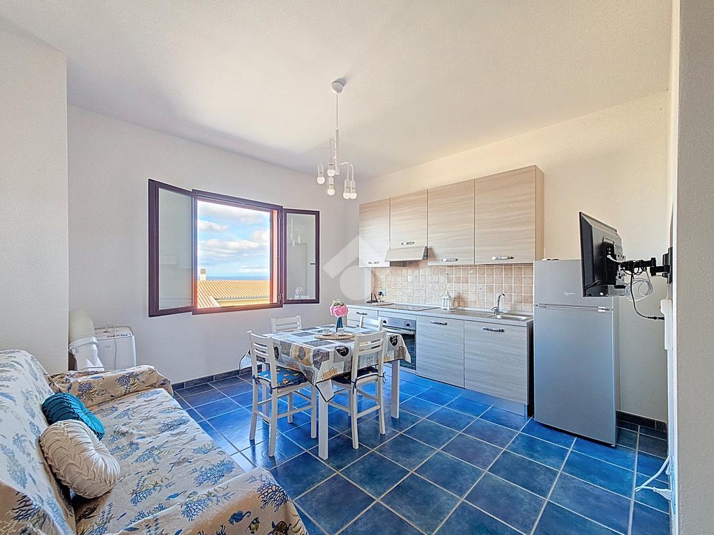 Al bilocale, accediamo tramite scala condominiale, dove nello stesso pianerottolo troviamo altri due appartamenti. Alla proprietà oggetto di vendita accediamo dal portoncino all'ingresso, dove possiamo trovare una vivibile zona giorno con angolo cottura che si presenta comoda e luminosa, dotata di tutti i comfort come un divano letto ideale per ospitare amici o parenti durante le vacanze, piano a induzione, forno e lavastoviglie.