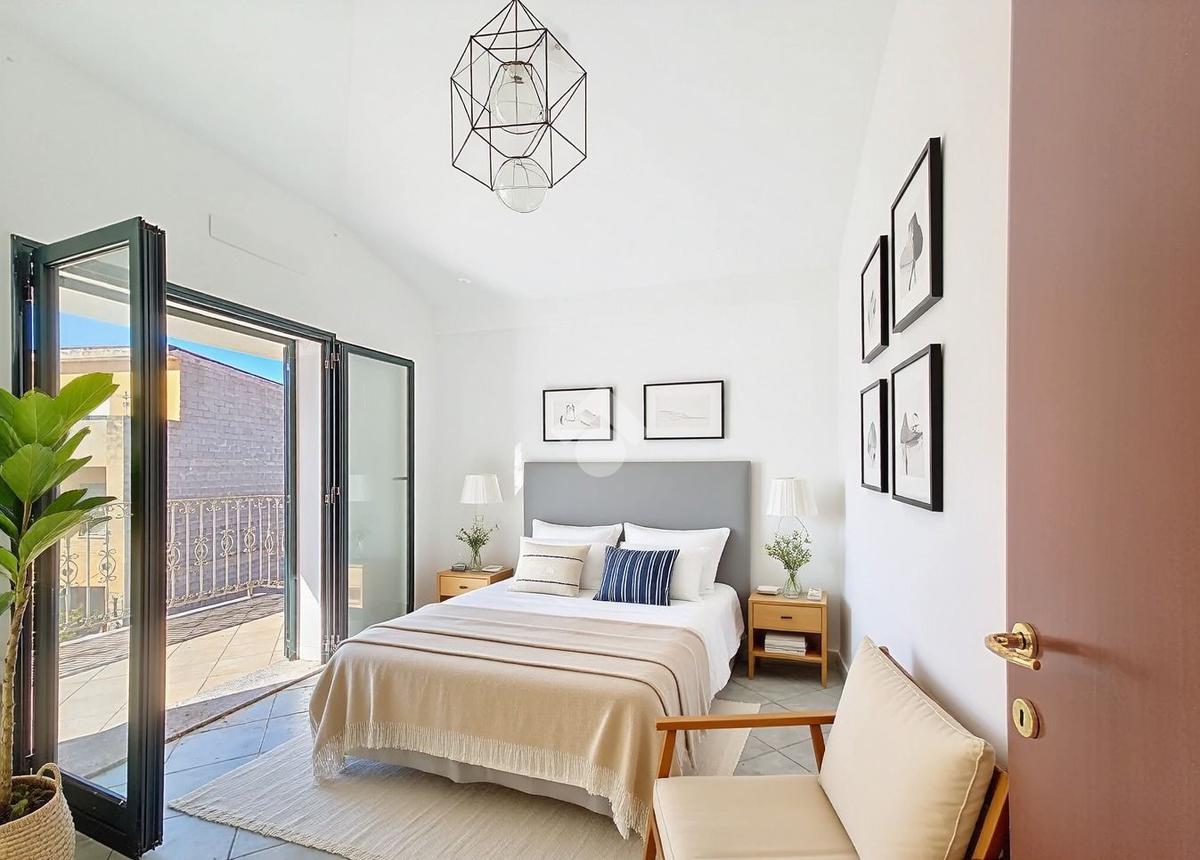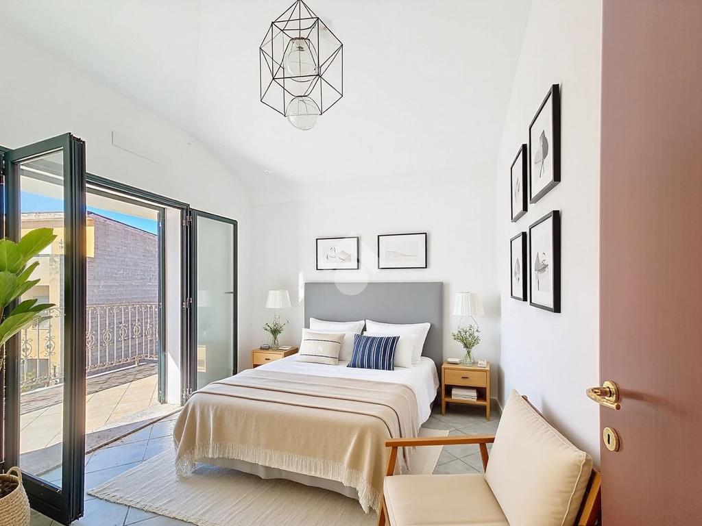 Camera matrimoniale con accesso a un balcone privato, ideale per garantire privacy e luminosità;