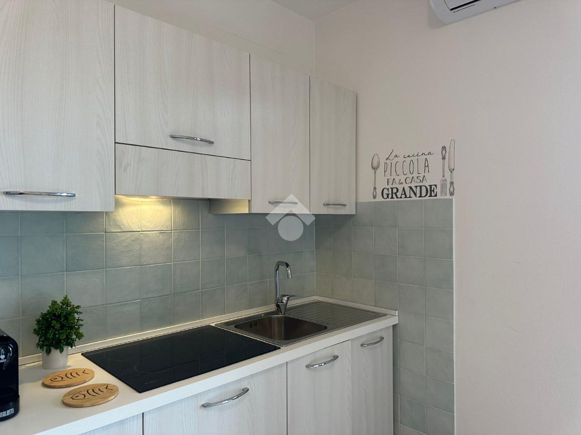 L’ingresso apre su un soggiorno accogliente con angolo cottura, uno spazio pensato per essere vissuto davvero: qui la zona giorno diventa il cuore della casa, dove rilassarsi e ricevere amici. Dal soggiorno si esce direttamente su un terrazzo vivibile, uno dei punti di forza dell’appartamento: un ambiente esterno comodo, adatto a colazioni all’aperto, cene estive o semplicemente per godersi un momento di tranquillità.
