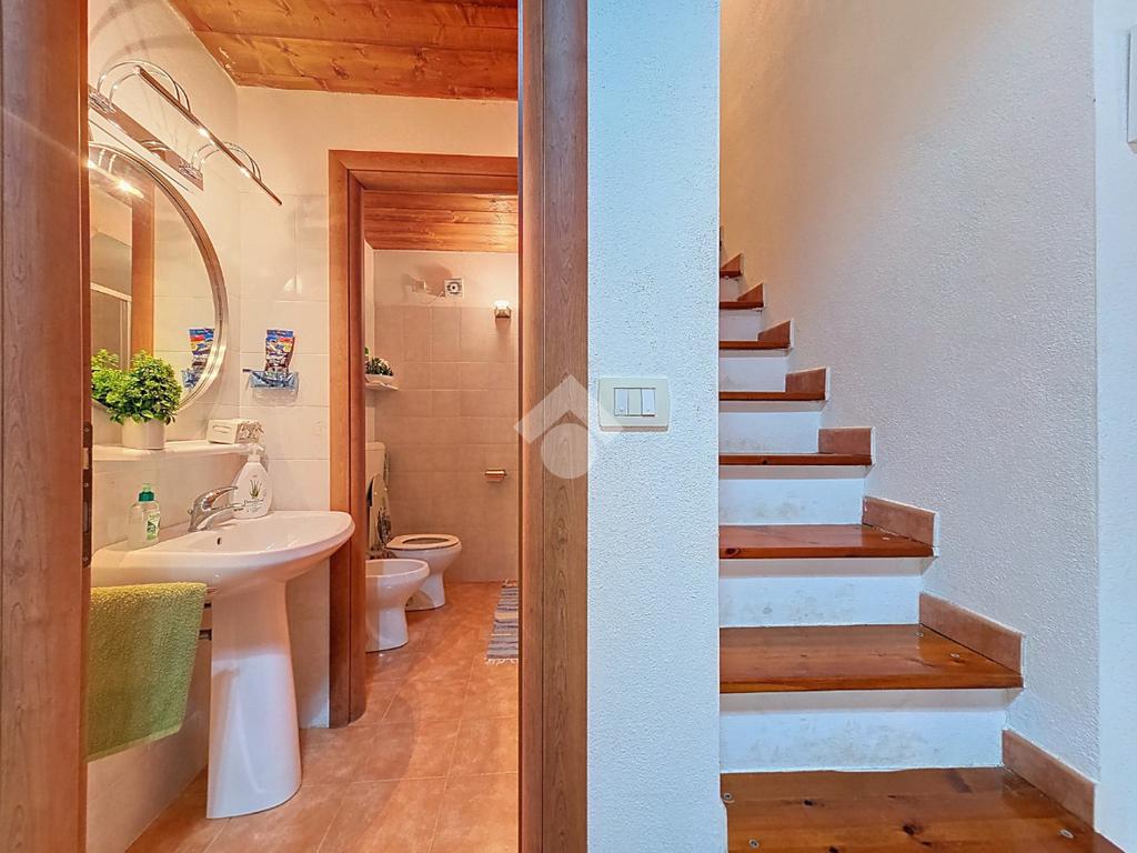 Al piano terra è inoltre presente un bagno con doccia, cameretta/ripostiglio mentre la terza camera accessibile dalla scala interna, si trova nel soppalco e presenta la possibilità di due ulteriori posti letto oltre che uno spazio dove riporre gli ingombri del mare.