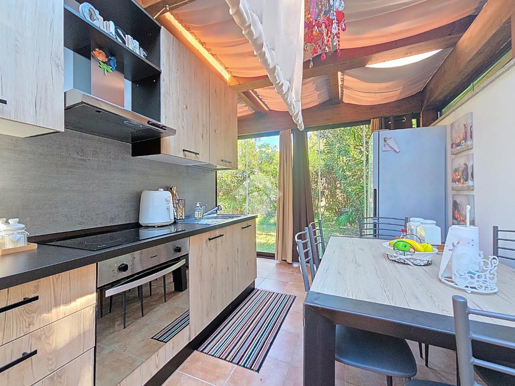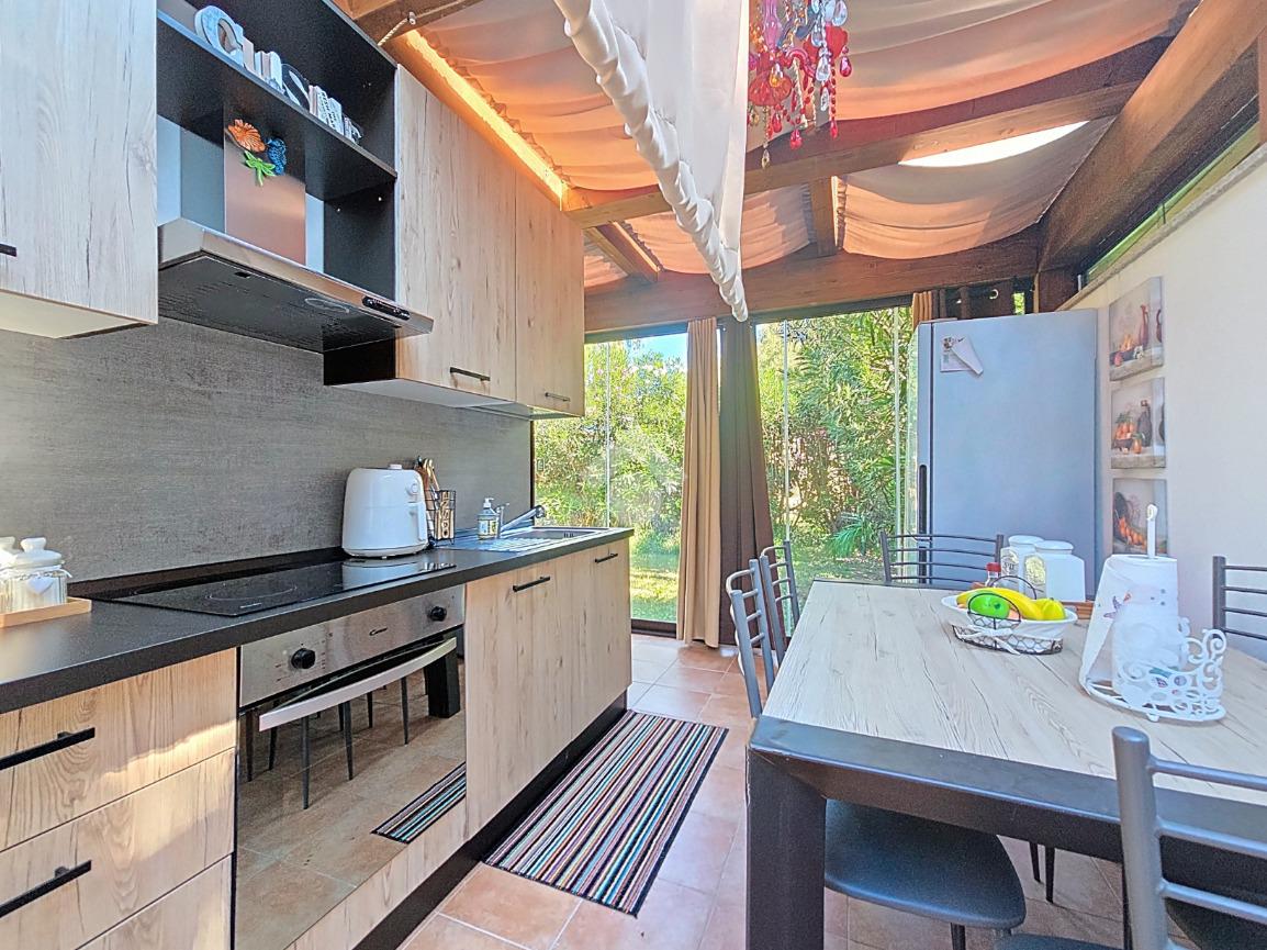 La zona giorno, studiata in ogni minimo particolare, possiede un piano cottura ad angolo, funzionale e comodo.