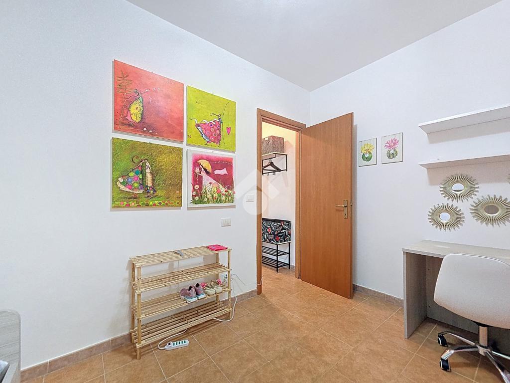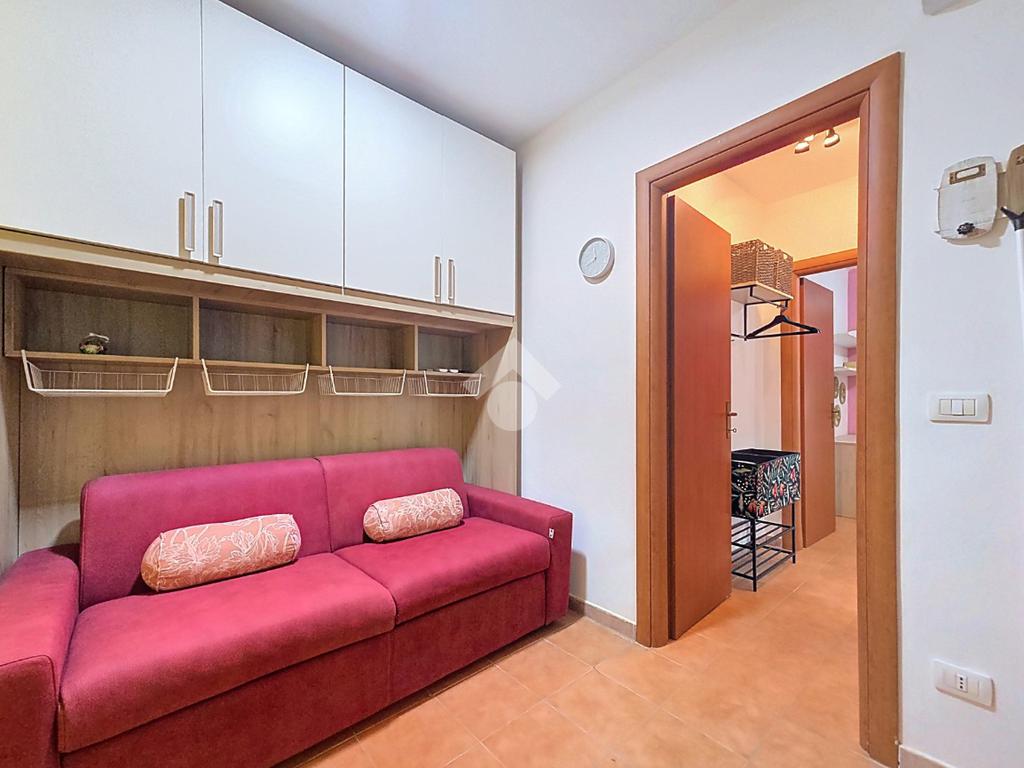 Tramite portone blindato accediamo alla zona notte, davanti un comodo divano letto, sulla nostra sinistra la camera matrimoniale e sulla destra disimpegno, bagno ampio e funzionale e per finire una cameretta con angolo studio.