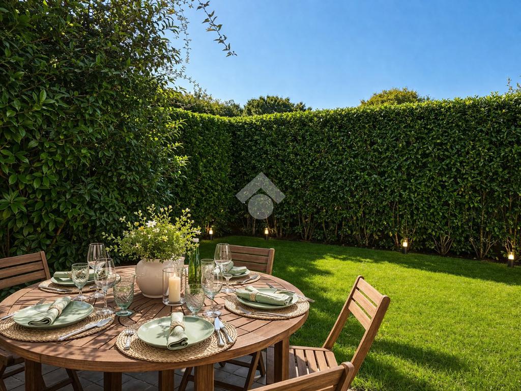 Le immagini degli spazi esterni sono state valorizzate tramite interventi di ottimizzazione visiva al fine di rappresentare al meglio le potenzialità del giardino.