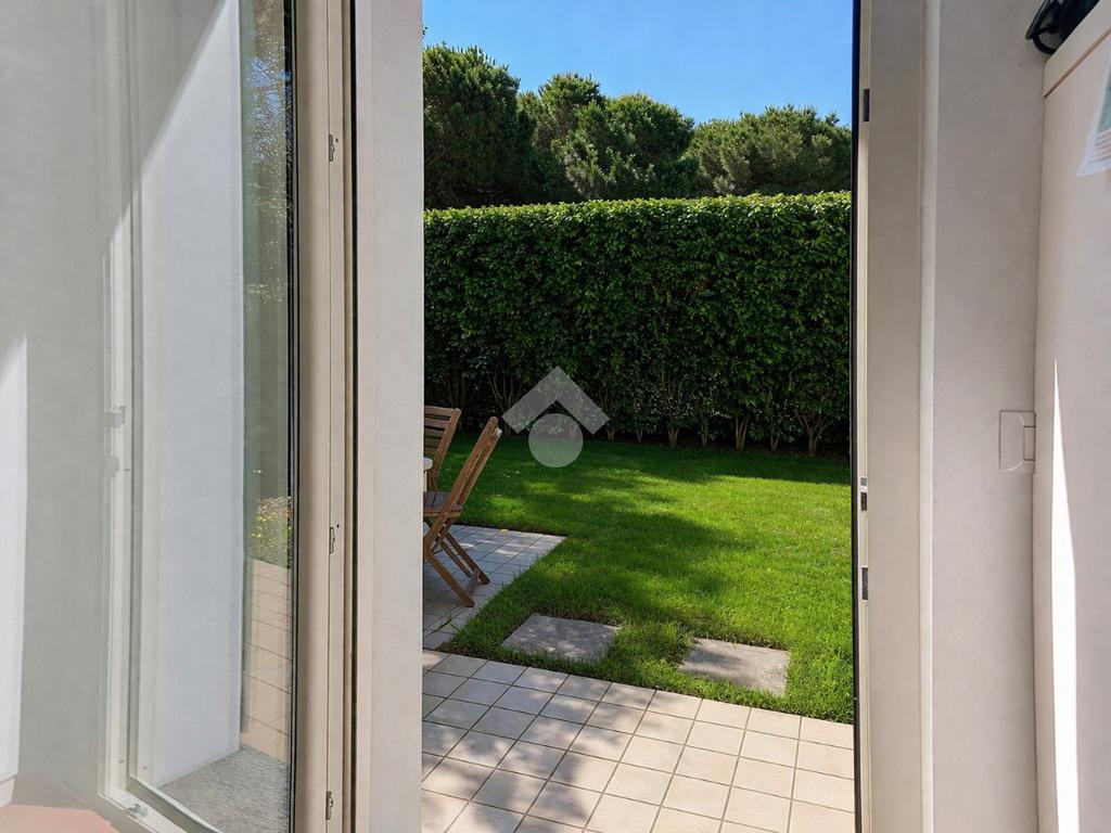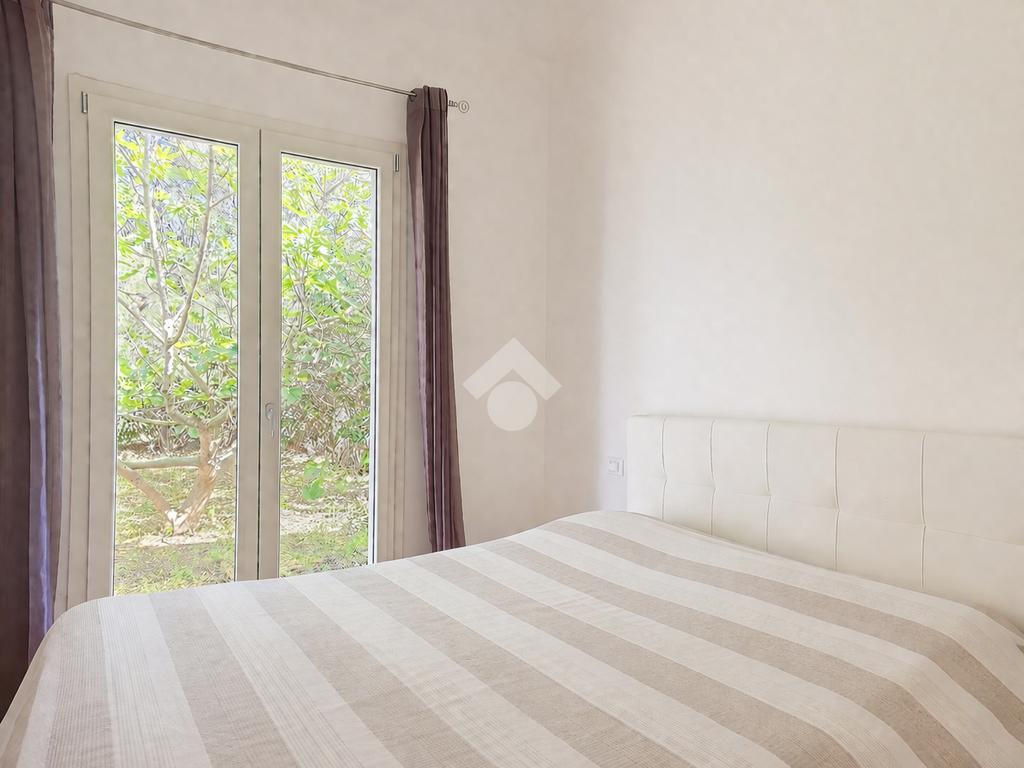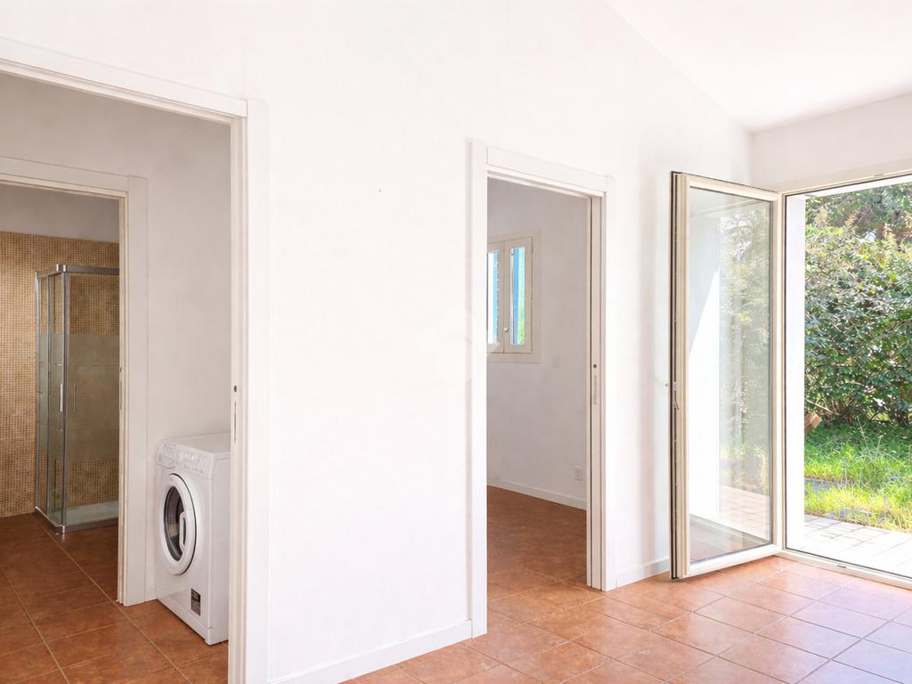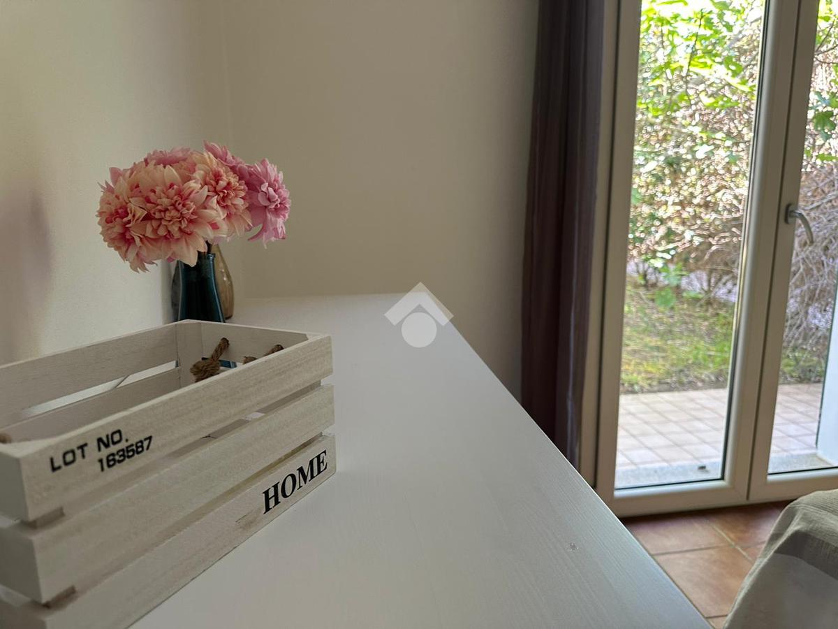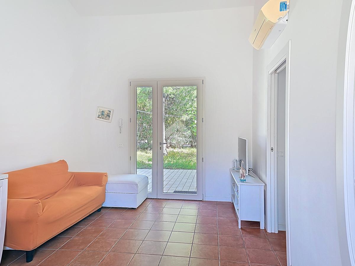 Internamente, l’immobile si sviluppa su un unico livello ed è composto da un comodo soggiorno con angolo cottura, dotato di uscita diretta sul giardino. Un pratico disimpegno conduce al bagno finestrato e alla camera matrimoniale, anch’essa con accesso diretto allo spazio esterno. Completa la proprietà una seconda stanza, ideale come studio o ulteriore camera da letto.