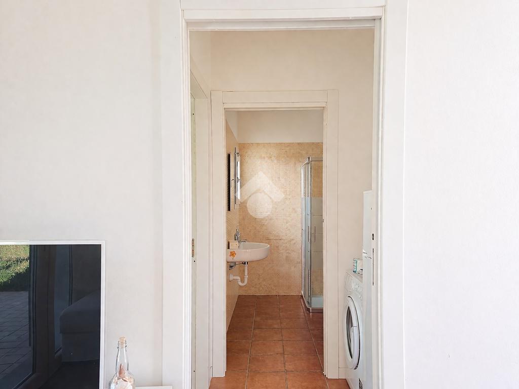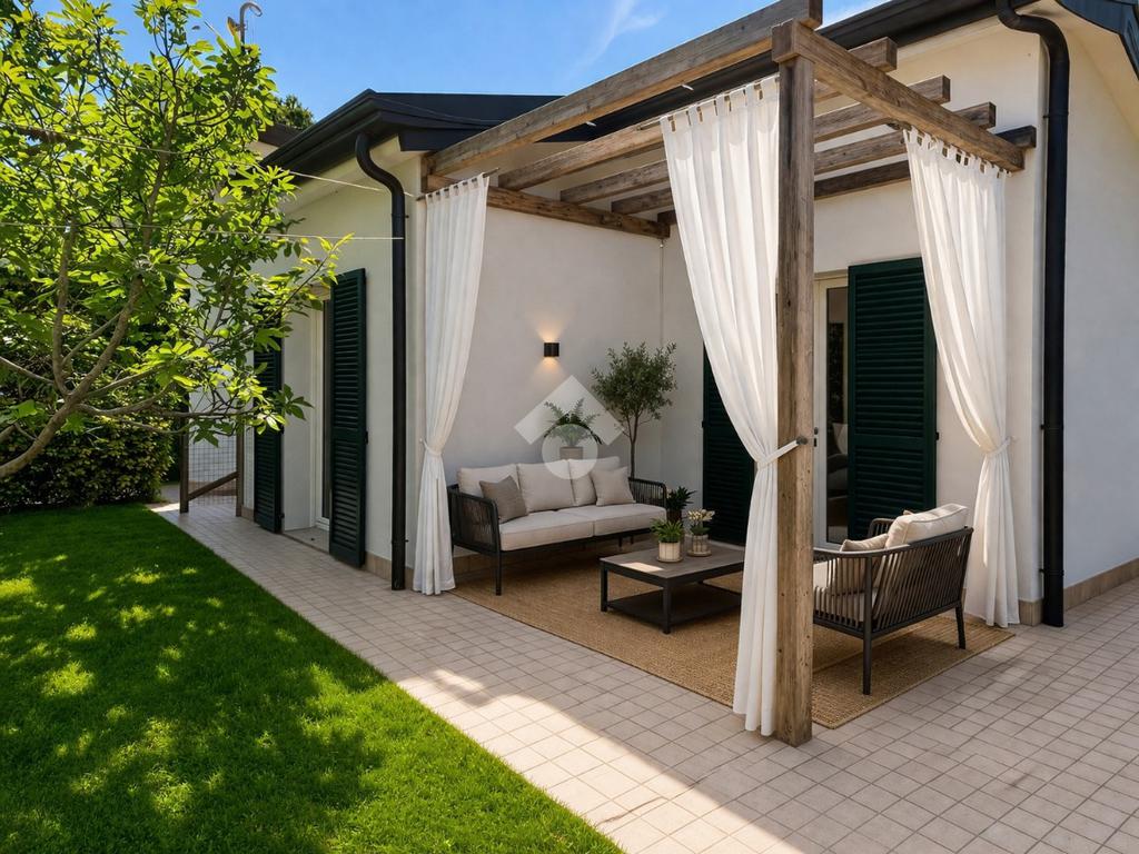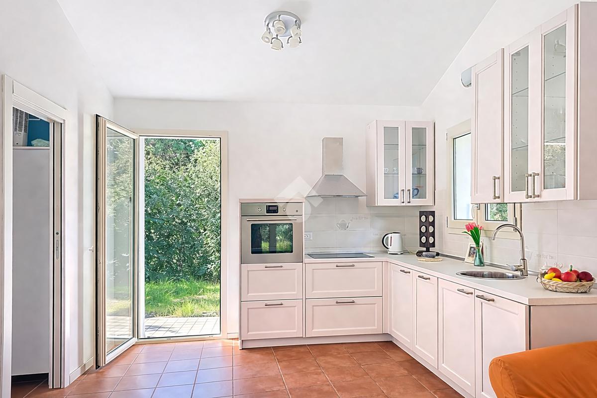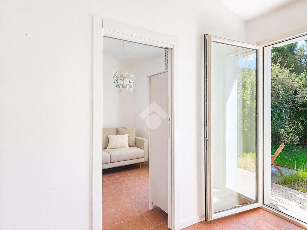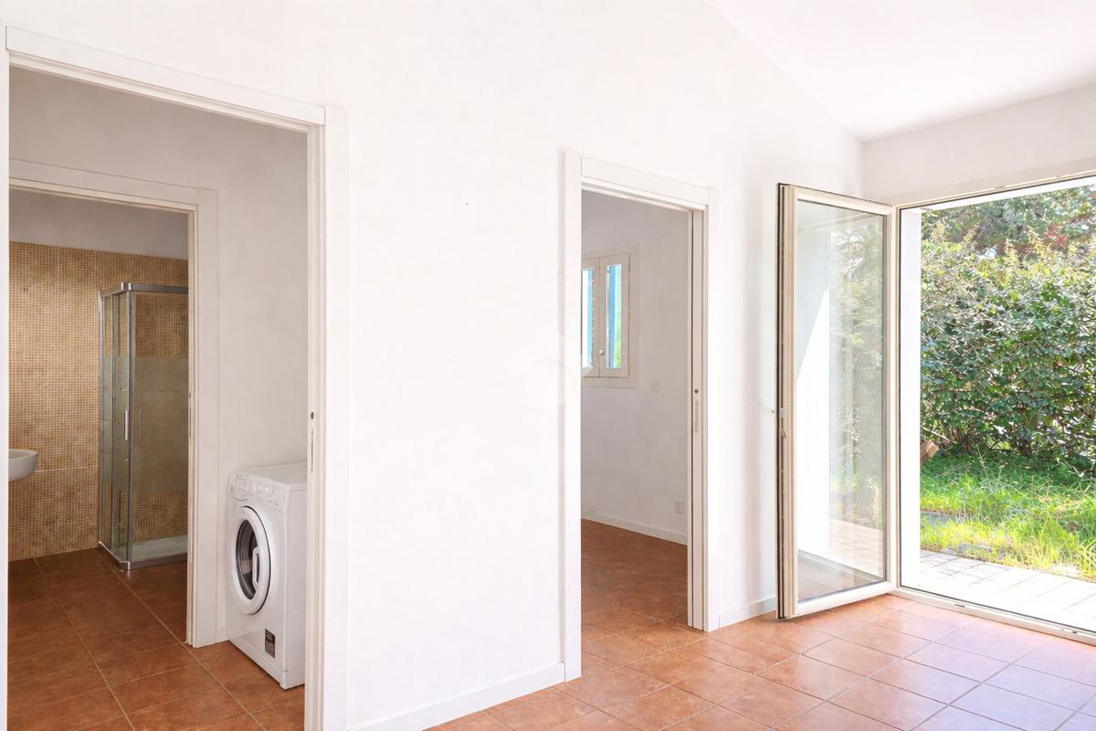 Internamente, l’immobile si sviluppa su un unico livello ed è composto da un comodo soggiorno con angolo cottura, dotato di uscita diretta sul giardino. Un pratico disimpegno conduce al bagno finestrato e alla camera matrimoniale, anch’essa con accesso diretto allo spazio esterno. Completa la proprietà una seconda stanza, ideale come studio o ulteriore camera da letto.