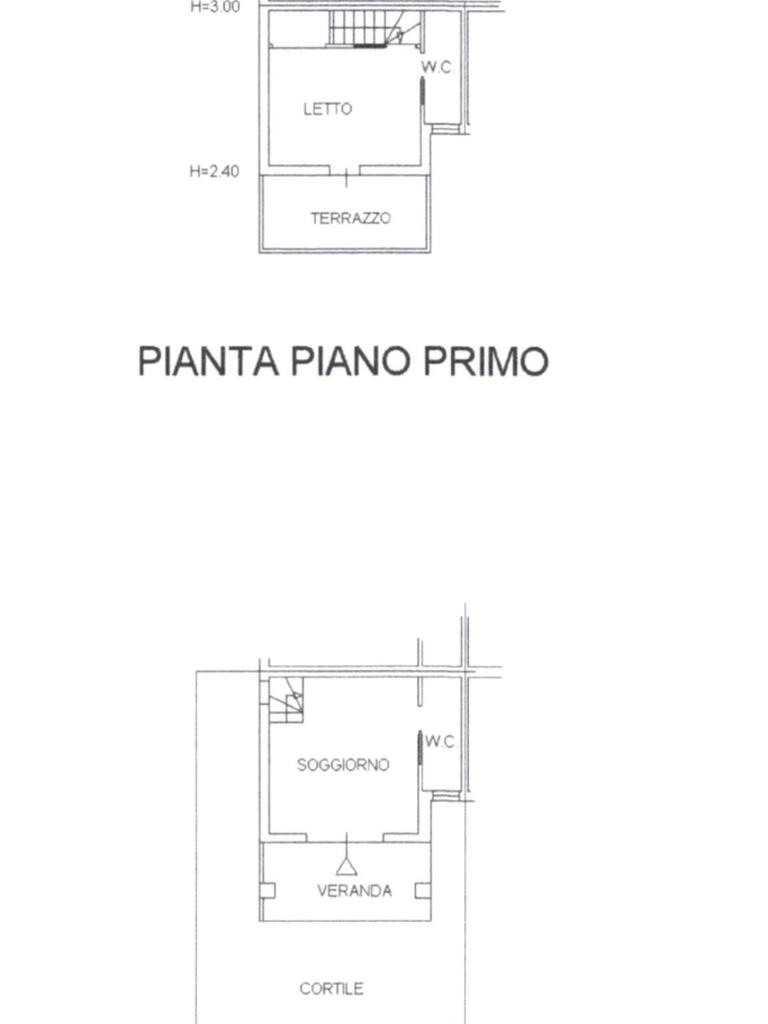 Piano primo: camera matrimoniale con terrazza ventilata, e secondo bagno con doccia finestrato.